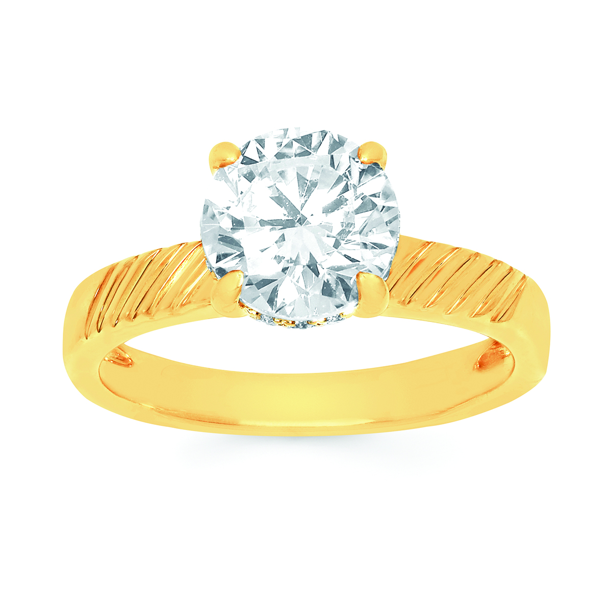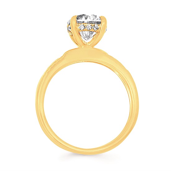 Engagement Ring Classic Bridal: 0.07 Ctw. Diamond Semi Mount shown with 2 Ct. Round Center Diamond in 14K Gold